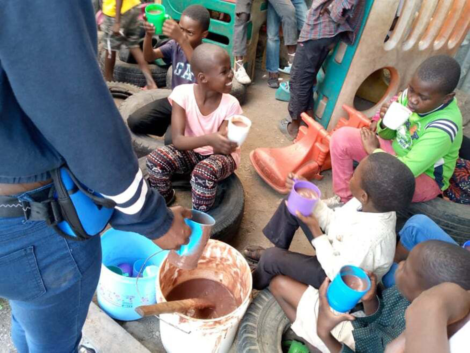 また、土曜日学校では、朝食と昼食を提供しています。調理をするのはHappy Promotion Centerの保護者。朝食にはポリッジ(お粥)を、昼食には豆ごはんなどが用意されます。